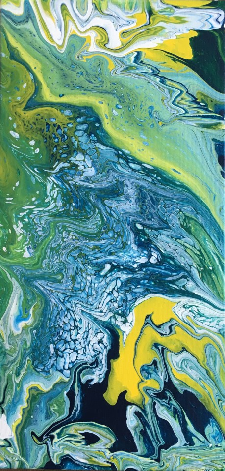 I have a passion for pourings! No matter if you use the same colors, techniques, or medium a pouring is unique and cannot be duplicated. Also, they are fun!